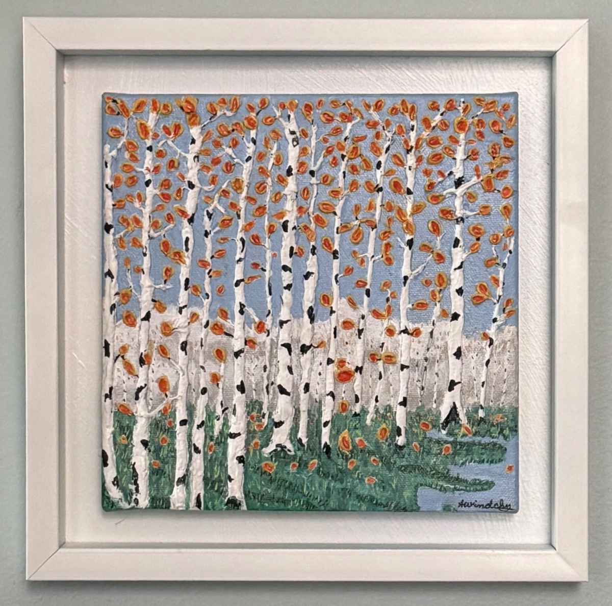 8” x 8” acrylic on canvas Framed 10.5” sq. Created with acrylic resin paste to produce dimension, and painted with acrylic paint. Donated to LVA Assn. For Art Auction Fund raiser June 25.