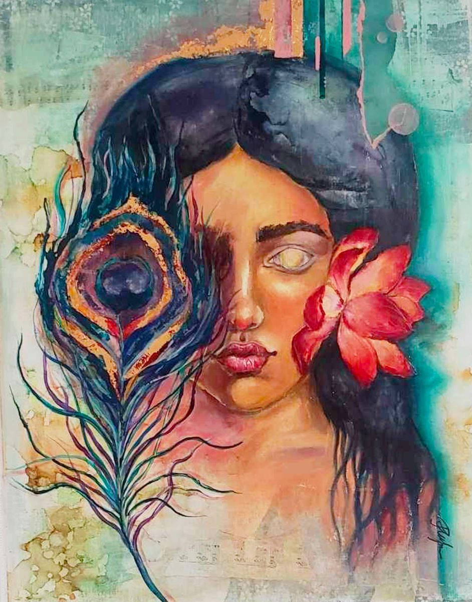 Mixed-media with use of gold leaf, acrylic,oil and vintage music sheets