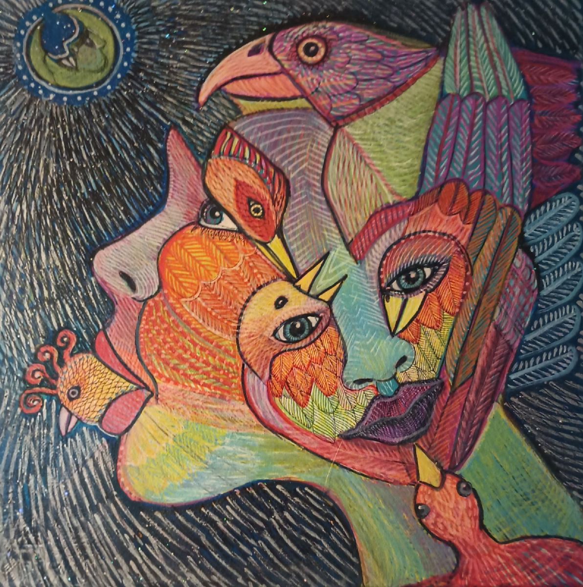This piece is entitled " Nightengale Song", and it incorporates my love of birds. It also uses these birds to illustrate what it feels like at times to have a heart pent up with longing for love lost, and no words to express it. An unheard love song...