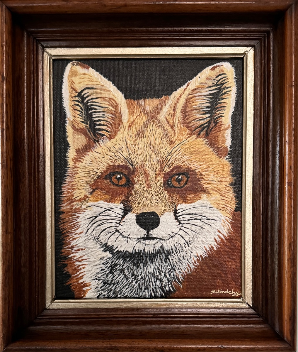 8” x 10” acrylic on canvas. Framed it is 11.5” x 13.5” in an antique frame. (Has wear)