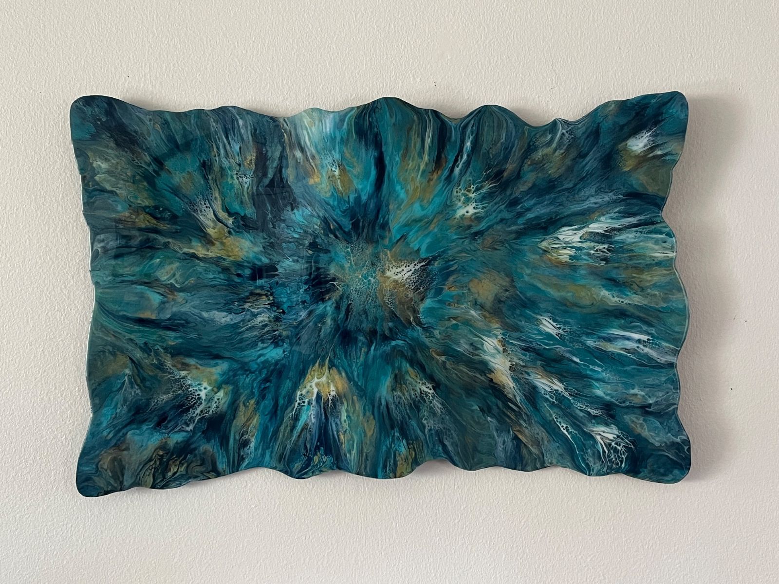 In this piece I wanted to first have fun with the shape as far as the edges as well as the movement of the piece. I wanted the feeling of a burst of color, or releasing energy from within. I hope you enjoy the piece and it finds a special place in your home.