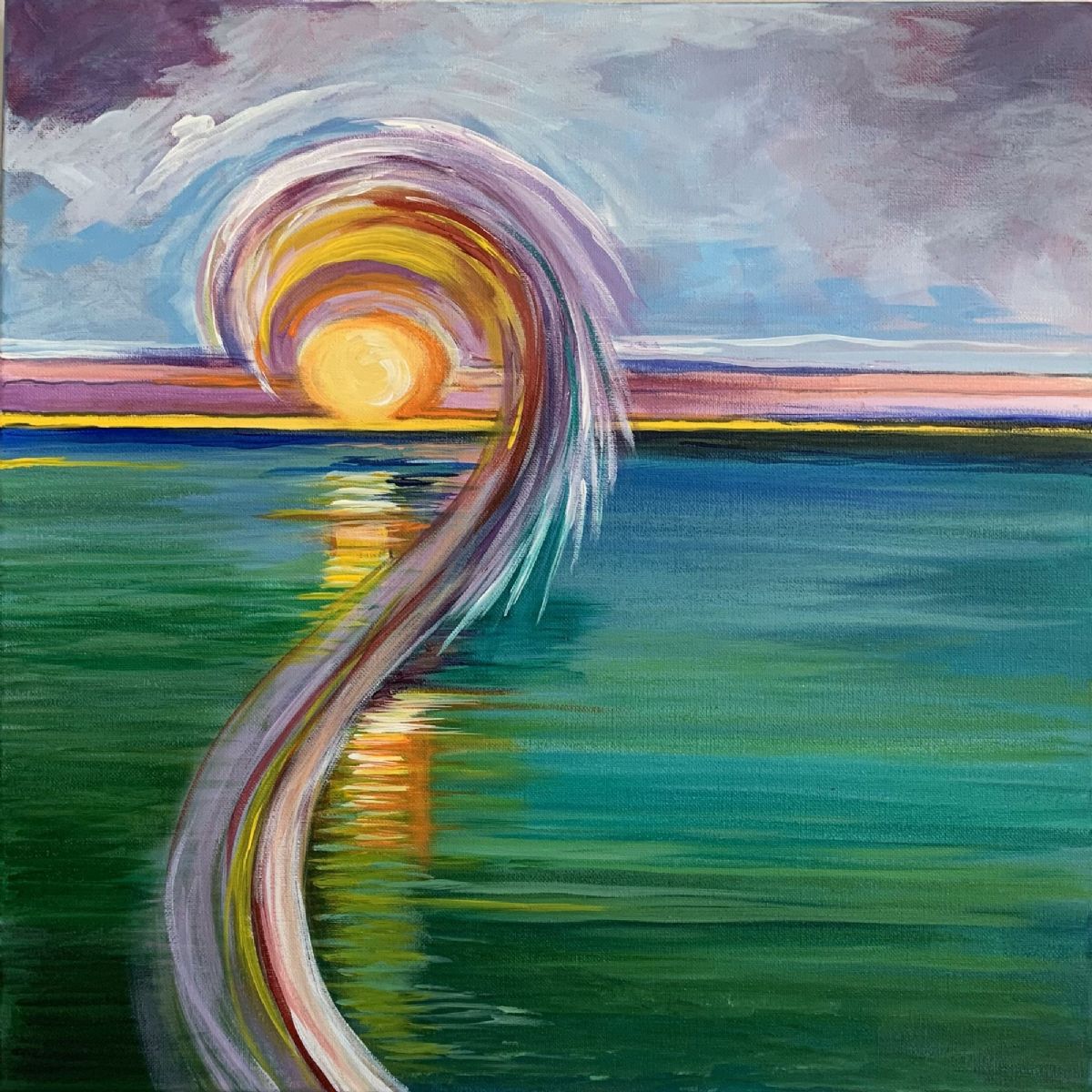 This work is a Speculative Seascape executed as a contemplation of our Spiritual connection to the Natural Elements and Forces beyond our understanding and control that shape our experience of this World. The piece was completed in August before our shared trauma of the back-to-back storms as an expression of the inherent Beauty of Creation and the Joy of Life.