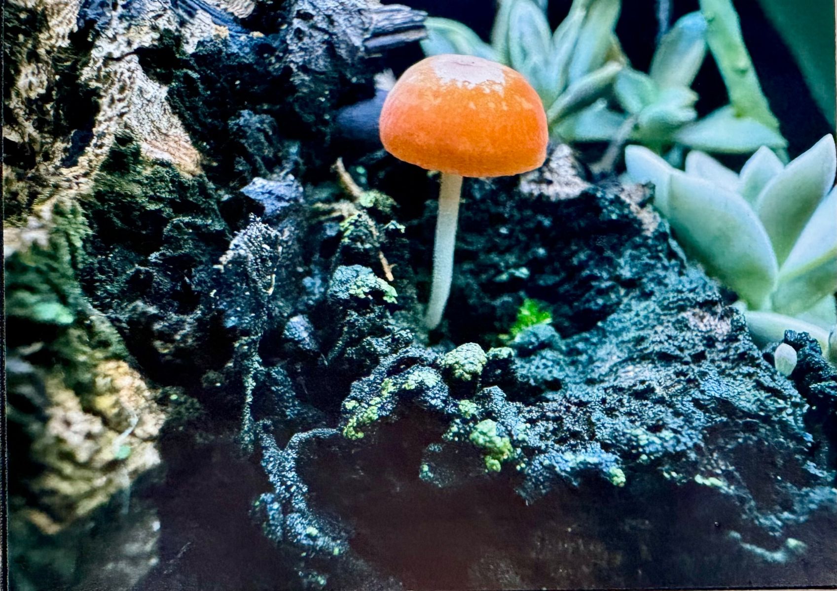 The moment I spotted mushrooms growing in my yard, I became obsessed! There’s something about them that captures my heart. As tiny as they are, they stand at attention and shine. Photo on wood.