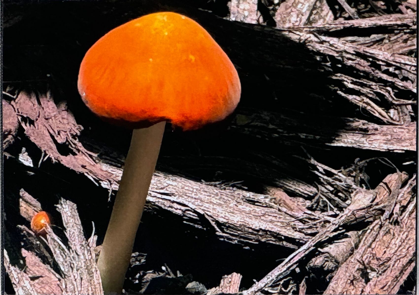 The first time I saw mushrooms growing in my yard, I found myself looking for them everyday. They fill my heart and spirit. They’re so tiny but when they are photographed, they stand out. Photo on wood.