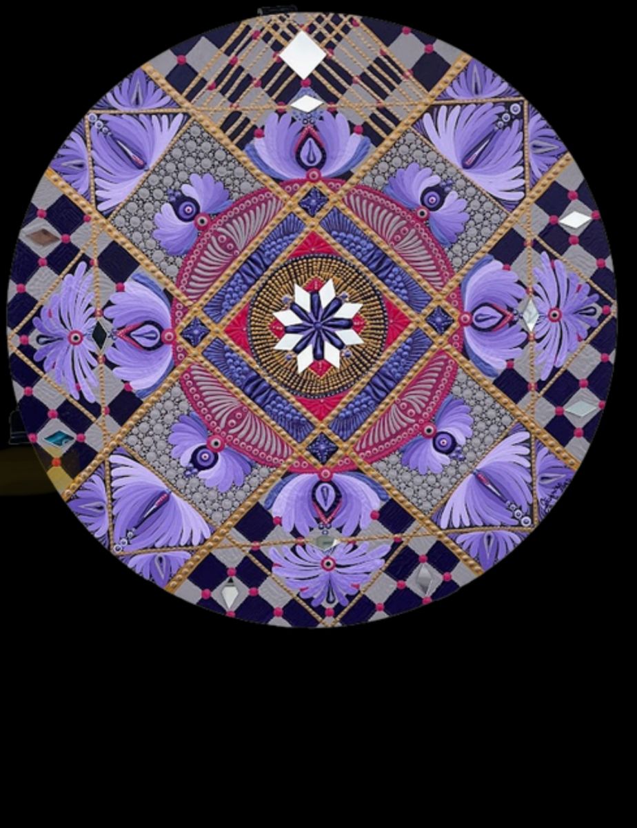 Even the smallest wings can inspire great flights. Violet Wings is a flight beyond dreams, towards a horizon where hope and magic come together.Dot painted with acrylics, on 19 inch. wooden circle.