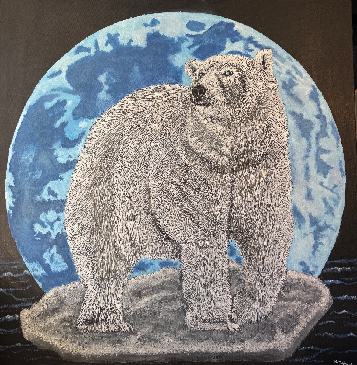 Oil on 36”x36”x1.75” canvas Polar Bears are experiencing problems due to the melting of their habitat. Who says there is no such thing as global warming?