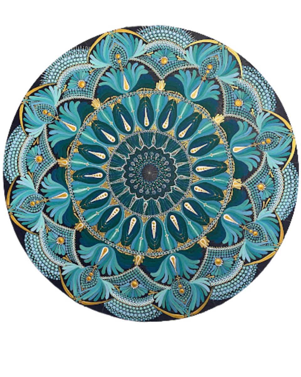 Teal Thoughts. A peaceful state of mind. Dot painted with acrylics on a 19.5 inches wood circle, .
