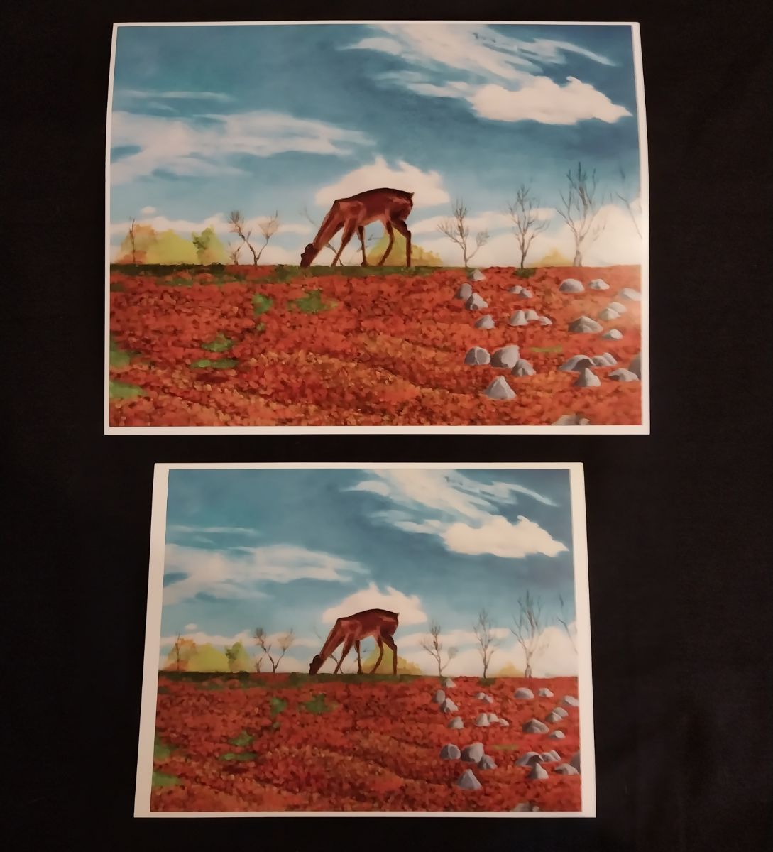 While walking in the Cleveland Metroparks with my girlfriend, we spotted this beautiful dear on the hill side. I quickly snapped off a picture in the hopes that I would paint it someday. To my surprise, I did. I hoped to capture this serene moment in time to share with others.