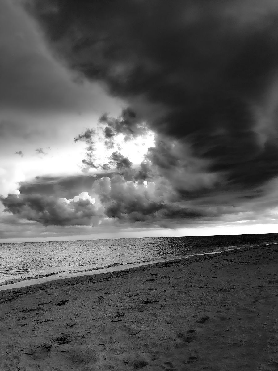 This photo was taken on Sanibel Island, as a typical afternoon storm came in. But I was struck by the formation of the clouds, and wanted the viewer to feel what I felt - the warm air melting away, cold winds blowing the towels and toys. No control. Just like that, the world changed.