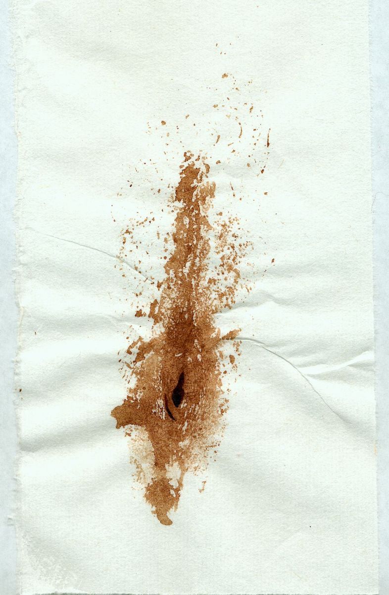 A body contact print of a vulva with menstrual blood.